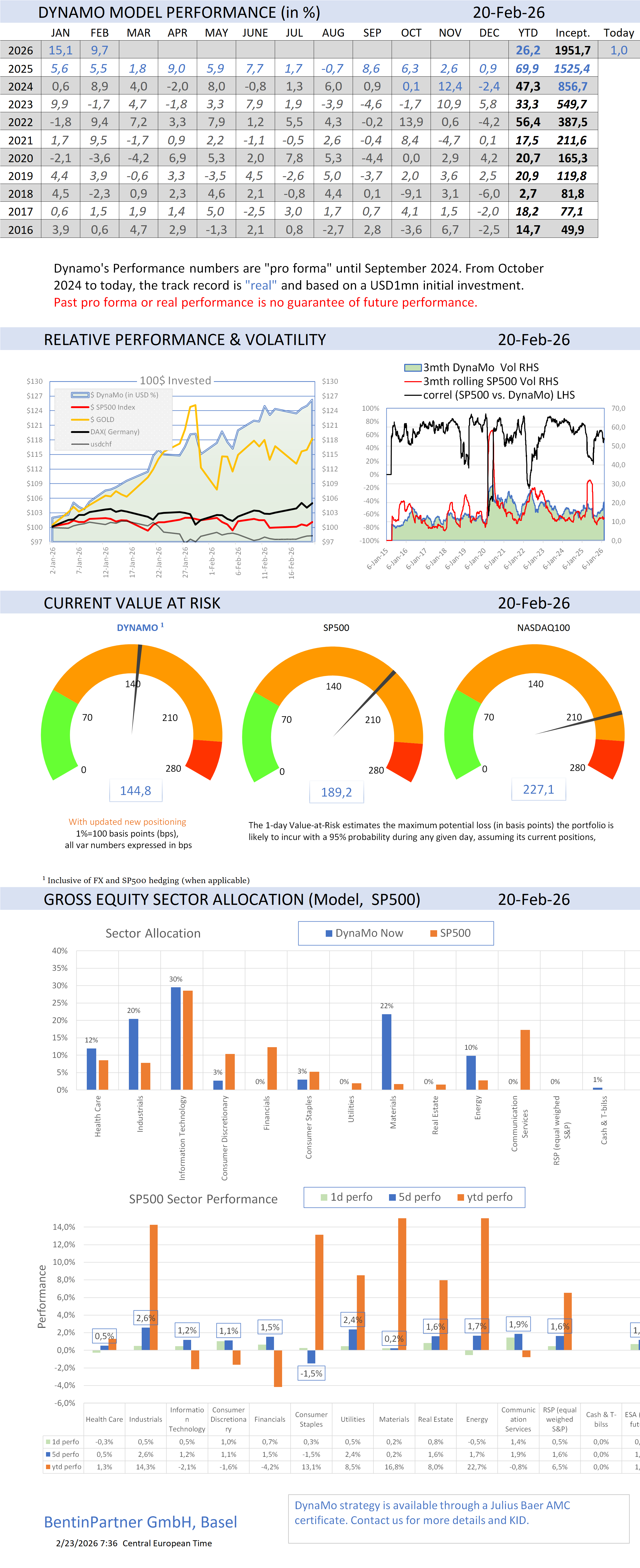 US stocks gained a little over 1% last week despite tech underperforming, more private credit woes, Fed minutes suggesting forthcoming US rate hikes “could” be as likely as rate cuts, war mongering surrounding a possible strike on Iran and Friday’s Supreme Court decision compromising or at least complicating D. Trump’s tariffs policy.