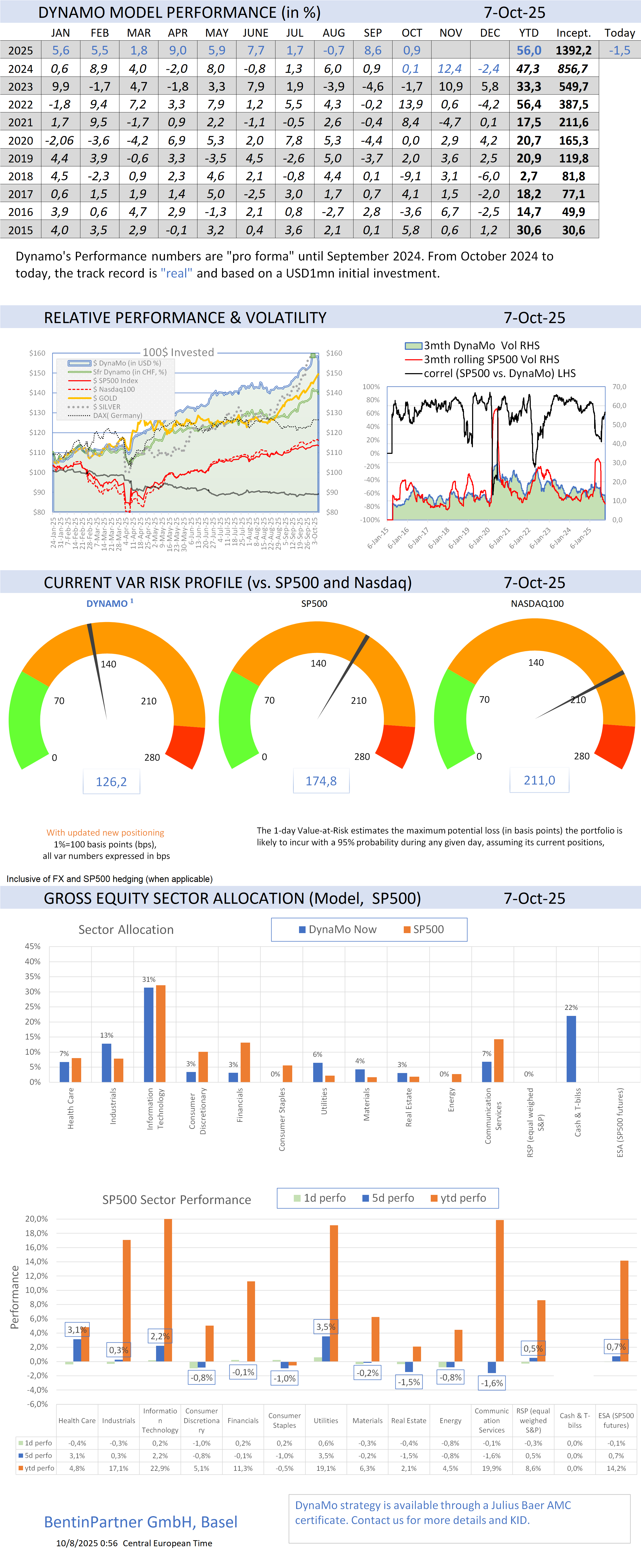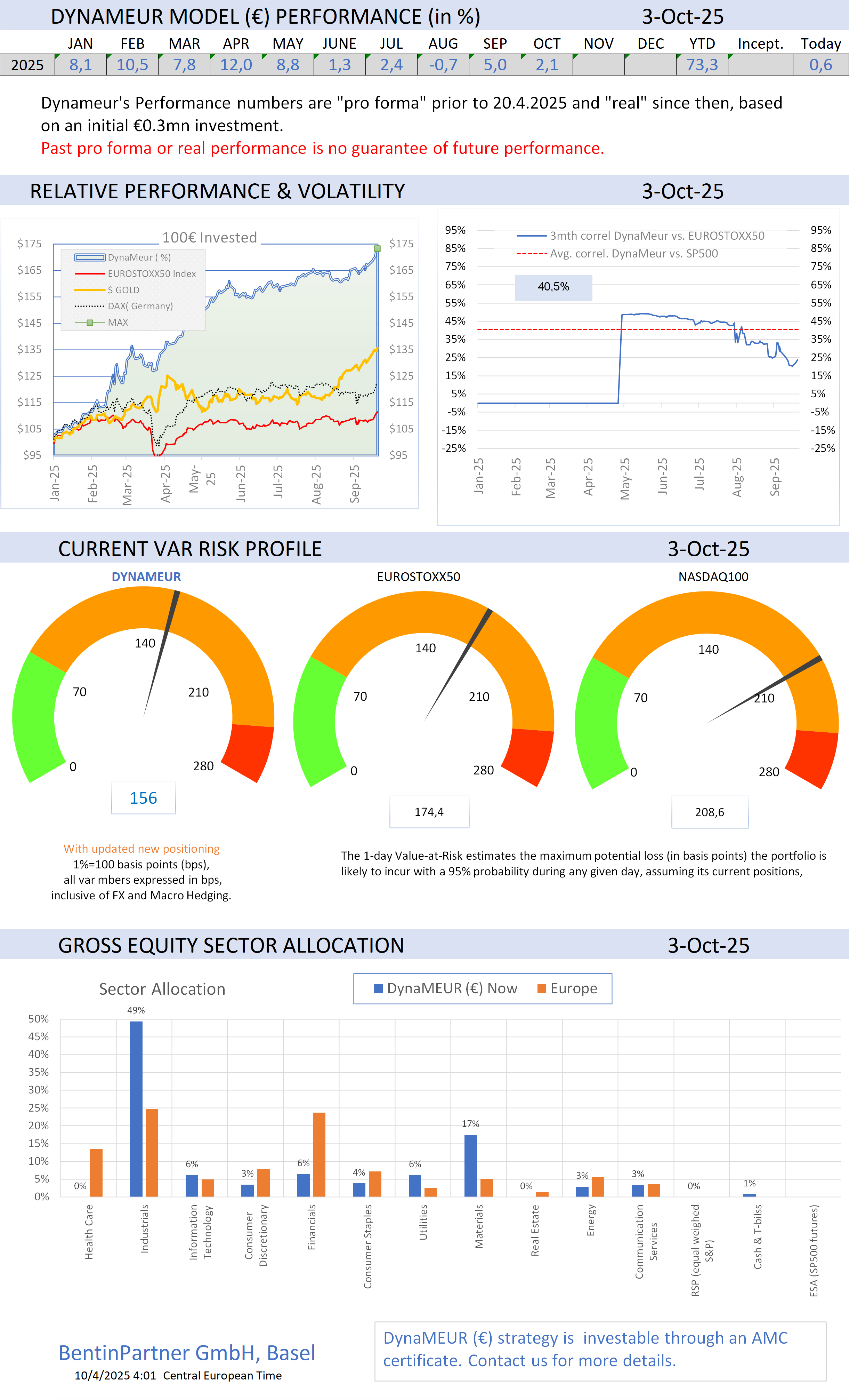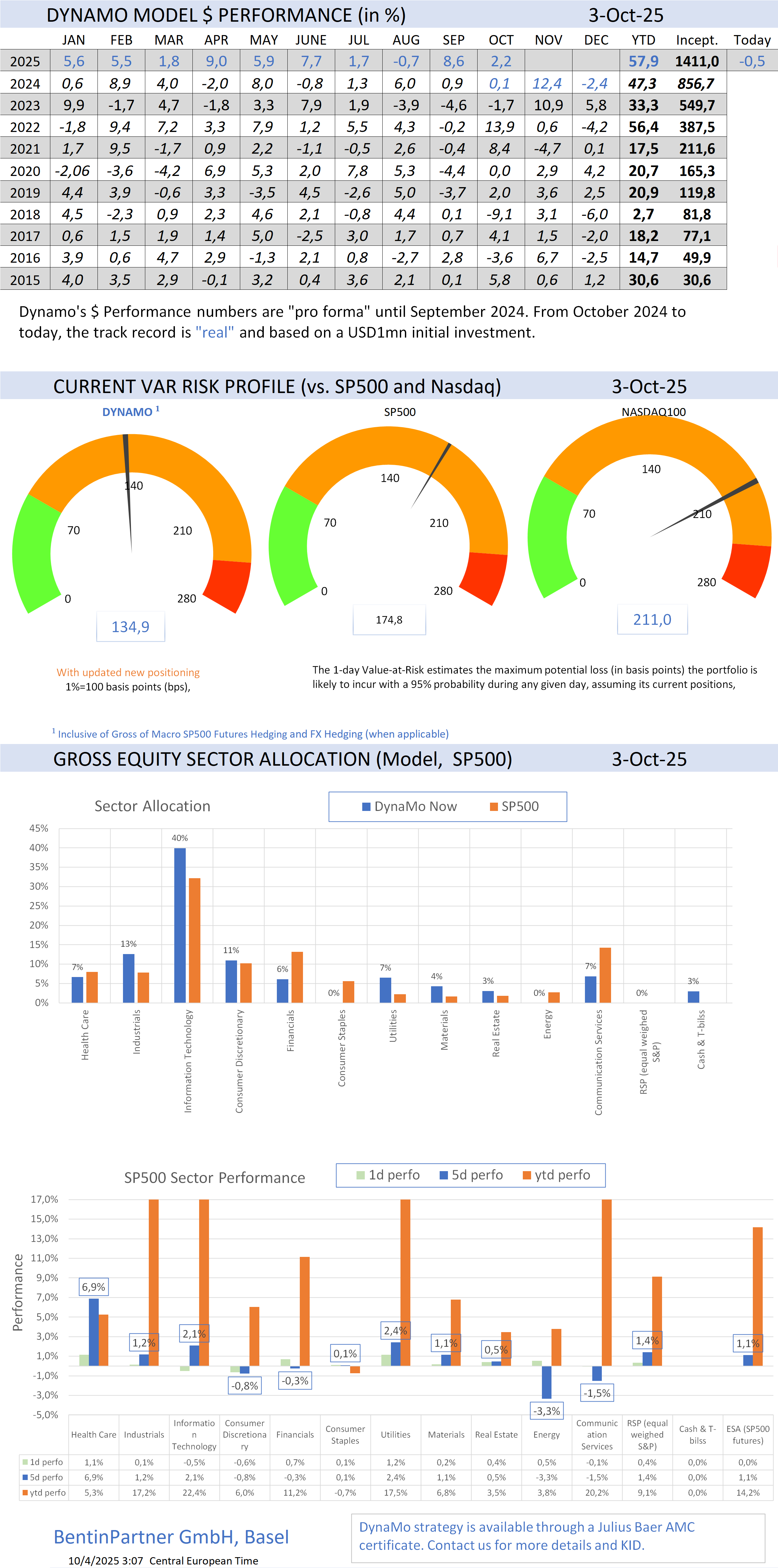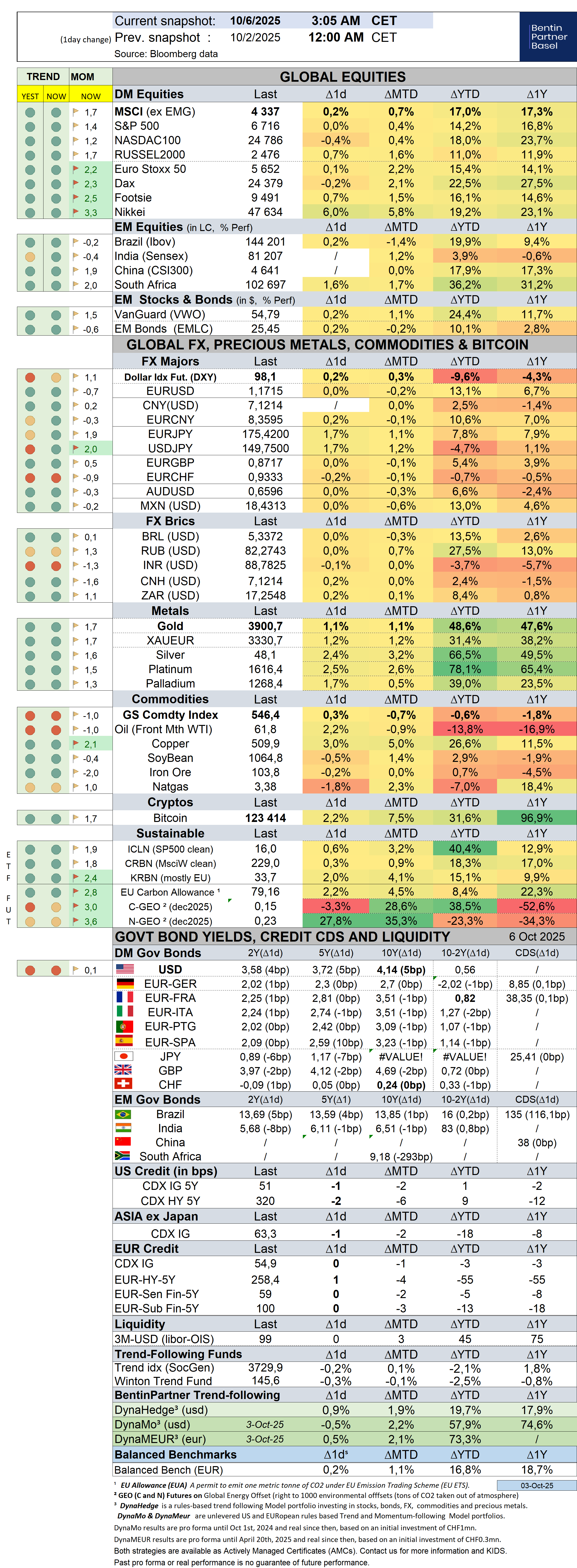 Ø Other Asian shares climbed in sympathy, often to a record, while Gold powered towards 4’000 (now USD3’924) as investors bet on looser (international) monetary policy while the US government remained shut.