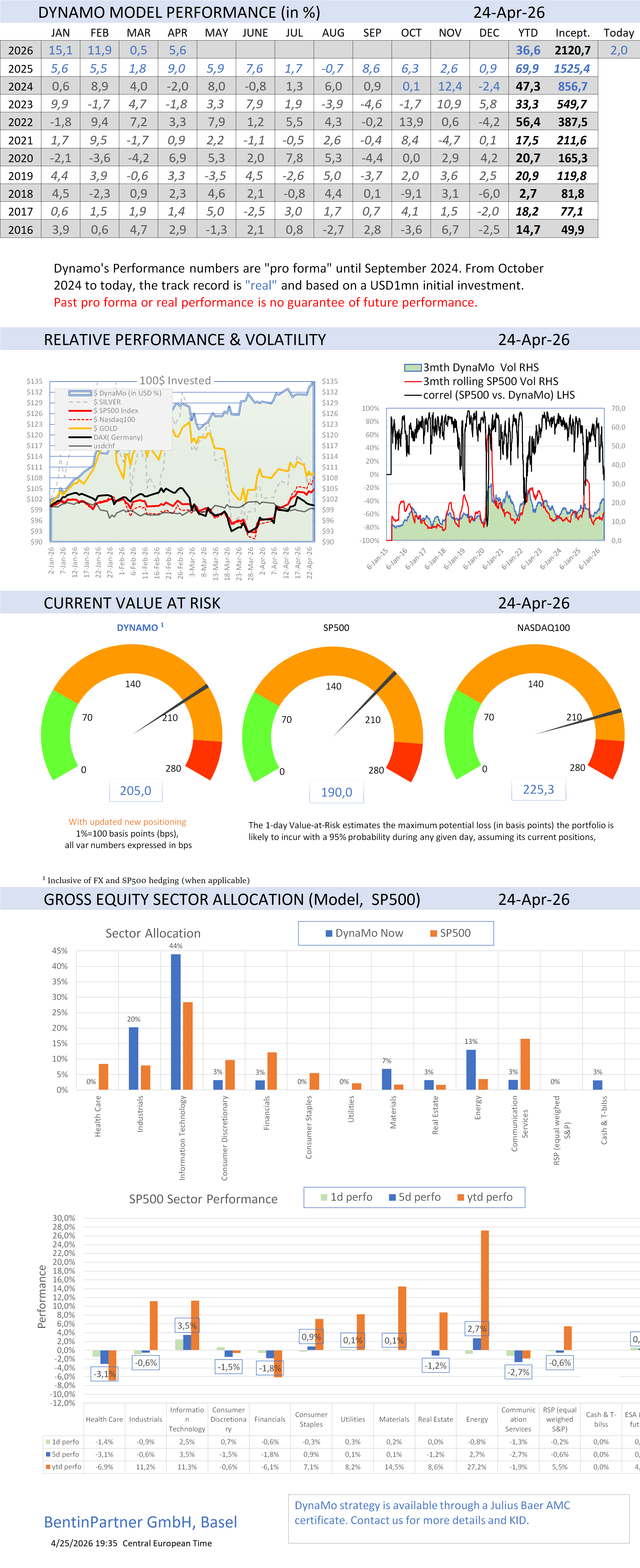 © Copyright by BentinPartner LLC. This communication is provided for information purposes only and for the recipient's sole use. Please do not forward it without prior authorization. It is not intended as a recommendation, an offer, or solicitation for the purchase or sale of any security or underlying asset referenced herein or investment advice. Investors should seek financial advice regarding the suitability of any investment strategy based on their objectives, financial situation, investment horizon, and particular needs. This report does not include information tailored to any particular investor. It has been prepared without any regard to the specific investment objectives, financial situation, or particular needs of any person who receives this report. Accordingly, the opinions discussed in this report may not be suitable for all investors. You should not consider any of the content in this report as legal, tax, or financial advice. The data and analysis contained herein are provided "as is" and without warranty of any kind. BentinPartner LLC, its employees, or any third party shall not have any liability for any loss sustained by anyone who has relied on the information contained in any publication published by BentinPartner LLC. The content and views expressed in this report represent the opinions of Marc Bentin and should not be construed as a guarantee of performance with respect to any referenced sector. We remind you that past performance is not necessarily indicative of future results. Although BentinPartner LLC believes the information and content included in this report have been obtained from sources considered reliable, no representation or warranty, express or implied, is provided in relation to the accuracy, completeness, or reliability of such information. This Report is also not intended to be a complete statement or summary of the industries, markets, or developments referred to in the Report.