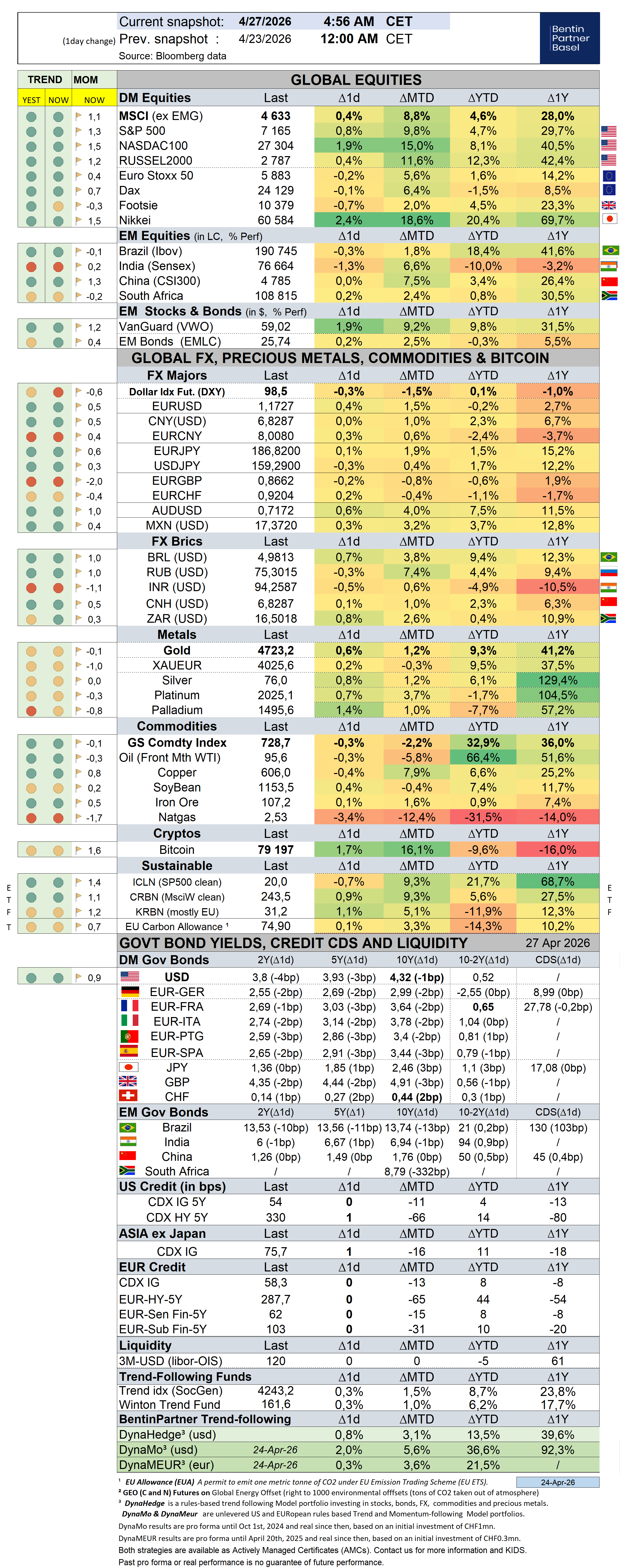 10Y US Treasuries dropped 5bps (13bps) to 4,30%. 10Y Bunds climbed 3bps (14bps) to 2,99%. 10Y Italian BTPs underperformed rising 10bps (23bps) to 3,78%, underperforming Bunds by 7bps.